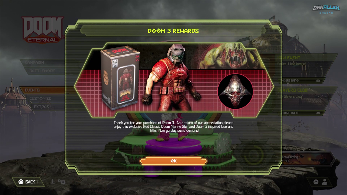Today Bethesda announced in partial hypecelebration of the DOOM 25th anniversary the DOOM Slayers Club. I think i know what theyre based on. Was playing Doom and Doom 2 on PS4 and both said that I got rewards for Doom Eternal by having the games.